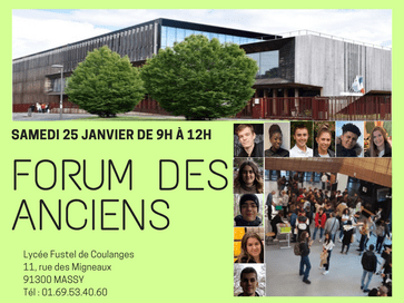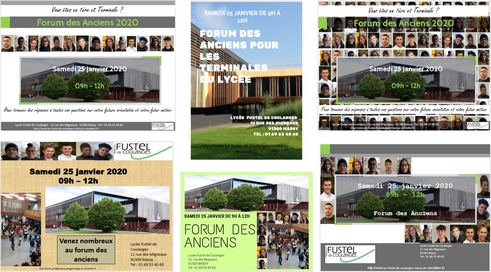 Parmi les 6 affiches, une a été retenue par l’équipe de direction du lycée. Elle sera très prochainement sur le site du lycée ainsi que sur les tableaux d’affichage du lycée pour permettre aux élèves des classe de première et de terminale du lycée Fustel de Coulanges de rencontrer les anciens élèves et de trouver des réponses sur leur future orientation et futur métier.