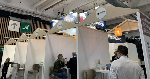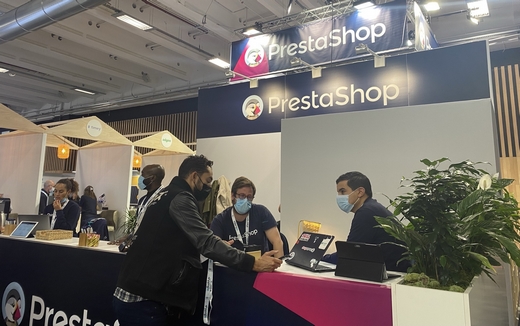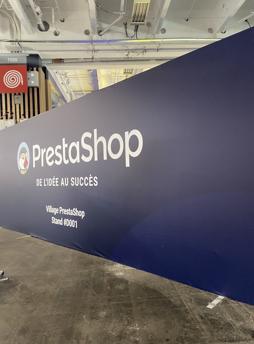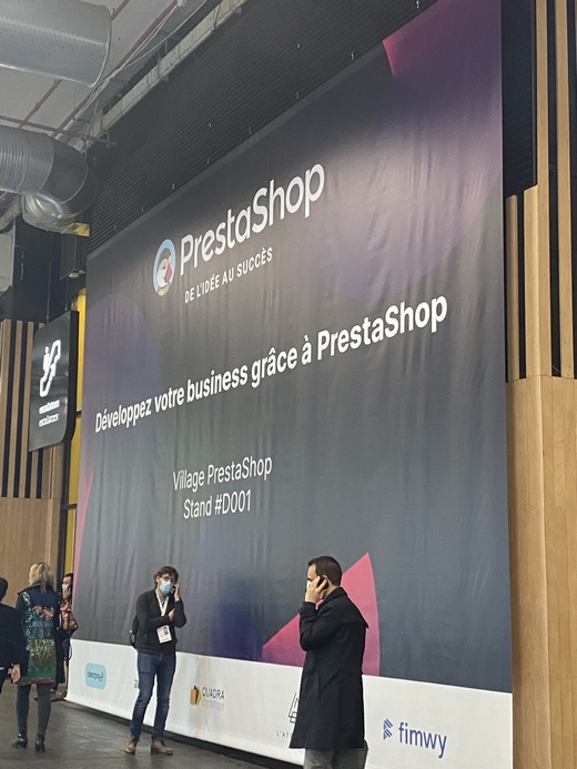 Nous arrivons sur le salon, une entreprise nous tape directement dans l’œil : Prestashop ! Ils sont partout, des grandes affiches exposées sur tout le salon.