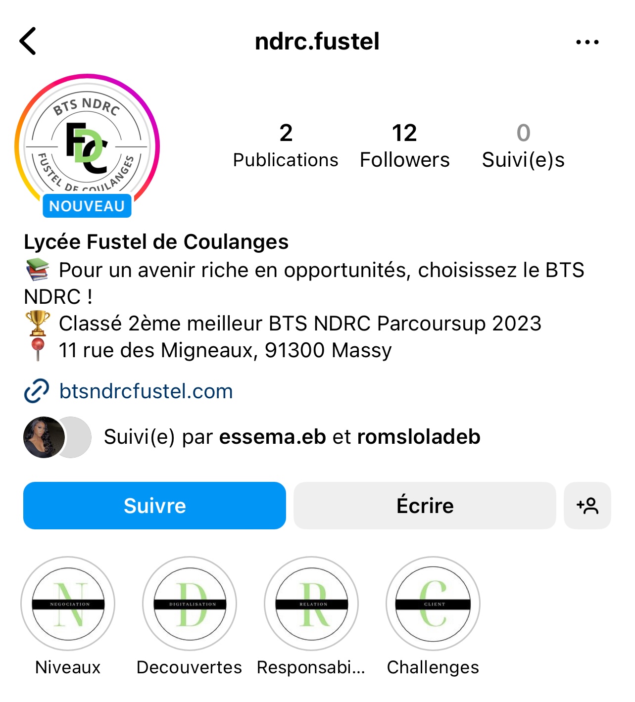 Les étudiants du BTS NDRC accueillent un petit nouveau : un compte Instagram rien que pour vous.