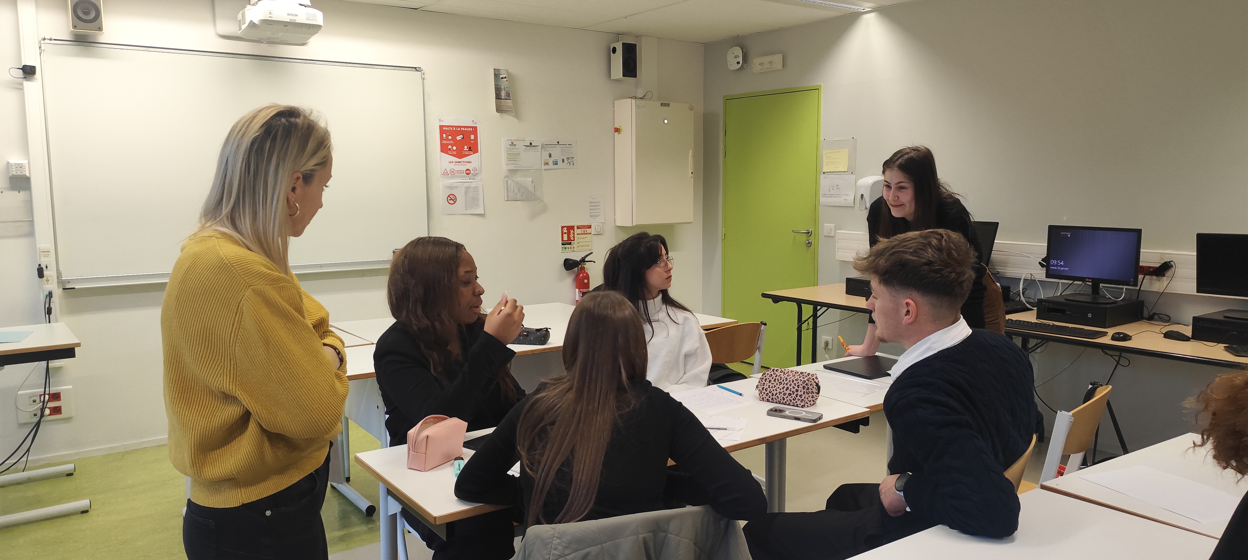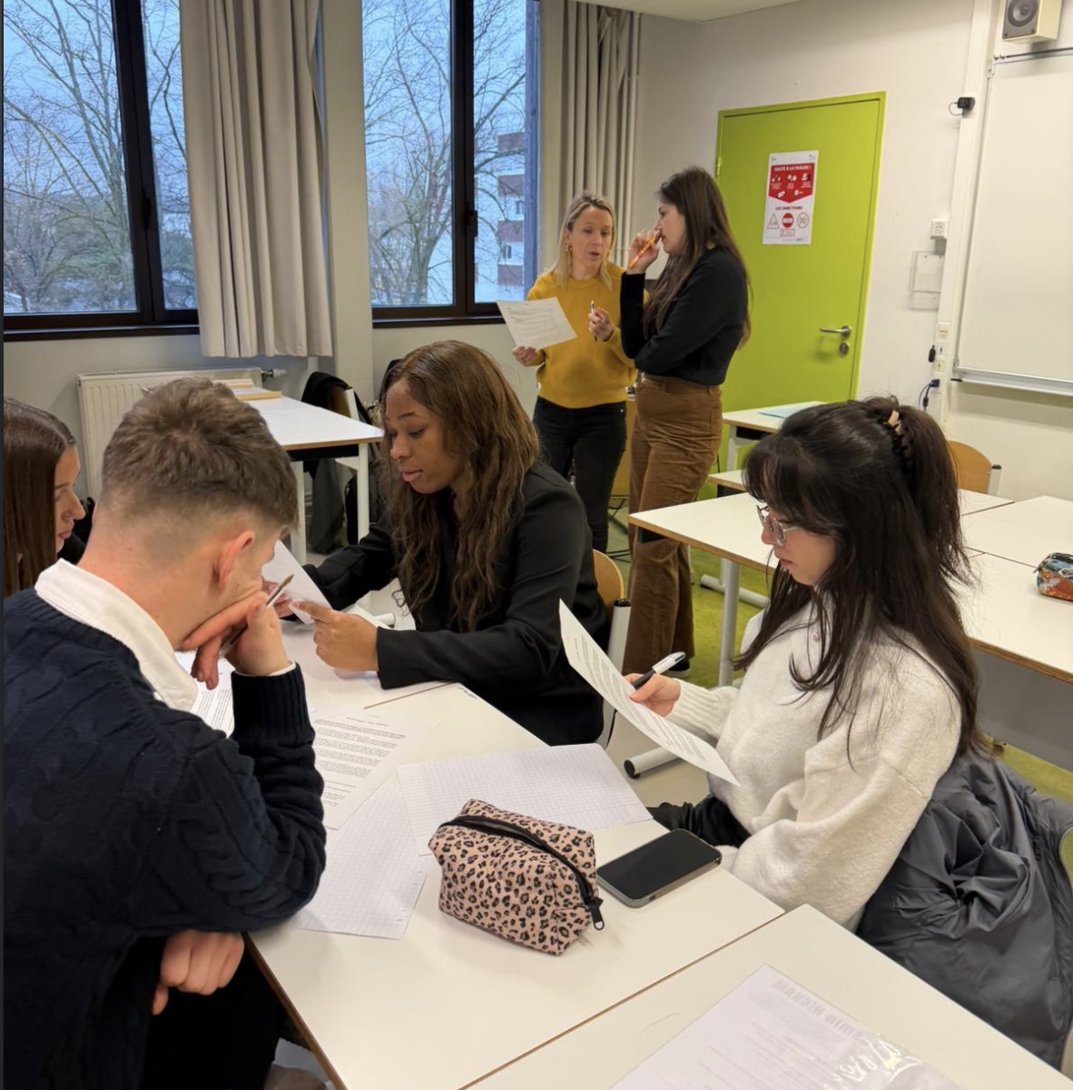 Le cœur de l’atelier reposait sur une mise en situation inspirée des pratiques réelles utilisées lors des campagnes d’alternance, notamment dans le cadre d’entretiens collectifs. Répartis en groupes, les étudiants ont analysé un cas volontairement complexe et réaliste, reflétant des situations professionnelles où les réponses ne sont ni évidentes ni uniques.