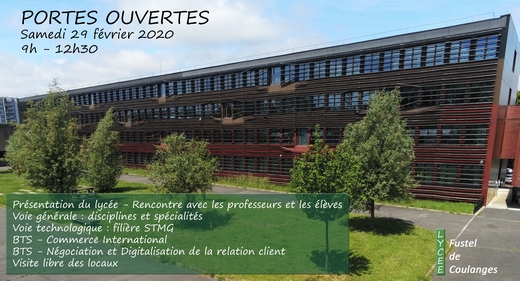 Samedi 29 Février, le lycée Fustel de Coulanges a ouvert ses portes pour accueillir des visiteurs et faire découvrir les différentes formations proposées.Cédric, Laura, Léa, Maëlle, Nicolas et Sabrina, étudiants du BTS NDRC, accompagnés de leurs professeures, Mesdames Dupret, Mostefi et Veyre, se sont donc rendus au lycée pour y présenter la formation. Les étudiants... Lire la Suite →
